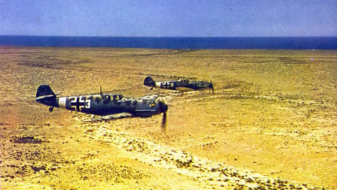 Rommel’in kara birliklerine destek veren hava unsurları da Afrika Cephesi’nin vazgeçilmez bir parçasıydı. Alman Luftwaffe’ye ait uçaklar, çöl göklerinde hem keşif hem de taarruz görevleriyle boy gösterdiler. Bunların başında efsanevi Messerschmitt Bf 109 avcı uçağı geliyordu. Bf 109, hava üstünlüğünü sağlamak ve Rommel’in birliklerini düşman uçaklarından korumak için Afrika semalarında önemli rol oynadı. Sıcak ve tozlu çöl şartlarına uyum sağlamak için birçok Bf 109 uçağı Trop (tropikal) modifikasyonuna sahipti; bu uçaklara hava giriş filtresi, motor ve kokpit için kum koruma önlemleri eklenmişti.